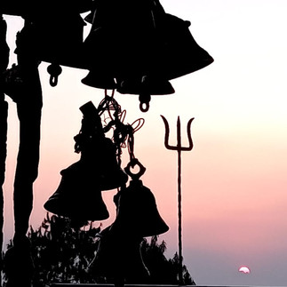 A la derecha una estatua con el dios shiva caracteristico por el tridente .