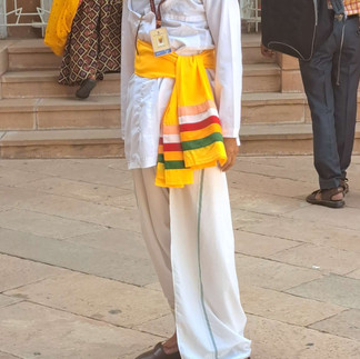 Tuvimos una demostración por parte de un guardia del palacio como ponerse el turbante en menos de 40 segundos .