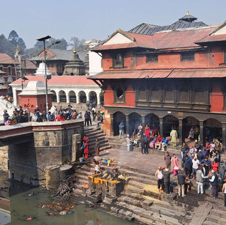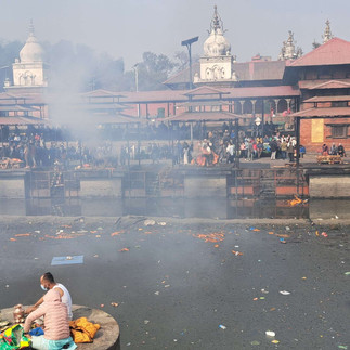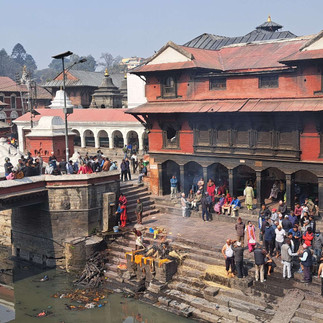 Veremos uno de los templos indu mas celebre Pashupatinah dedicado a la diosa shiva. En un margen del rio bagmati asistimos a las cremaciones un poco similar a Benares en la india en el otro margen tienen lugar las ceremonias de commemoracion al difunto reuniendo familiares y monges.