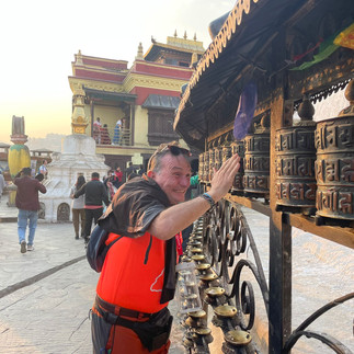 Por la tarde noche de este segundo dia vamos a visitar el barrio de thamel antiguo barrio hippie en los 60 actuellemente lleno de negocios de artesania y de articulos de deporte nos pasaremos seguramente el ultimo dia si queremos hacer unas compras .